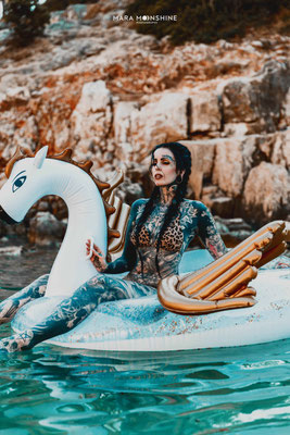 Statt Mermaid gibts Bademode oder ein Kleid im Wasser,